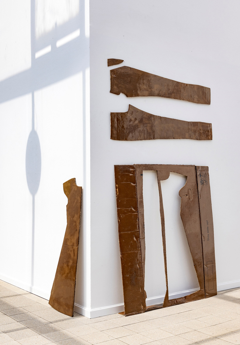 < > Snitmønstre skåret i genbrugspapkasser og lakket med økoepoxy 2023, 200x164 cm.Foto: Ole Akhøj© Copyright Lisbeth Nielsen Lyrstrand