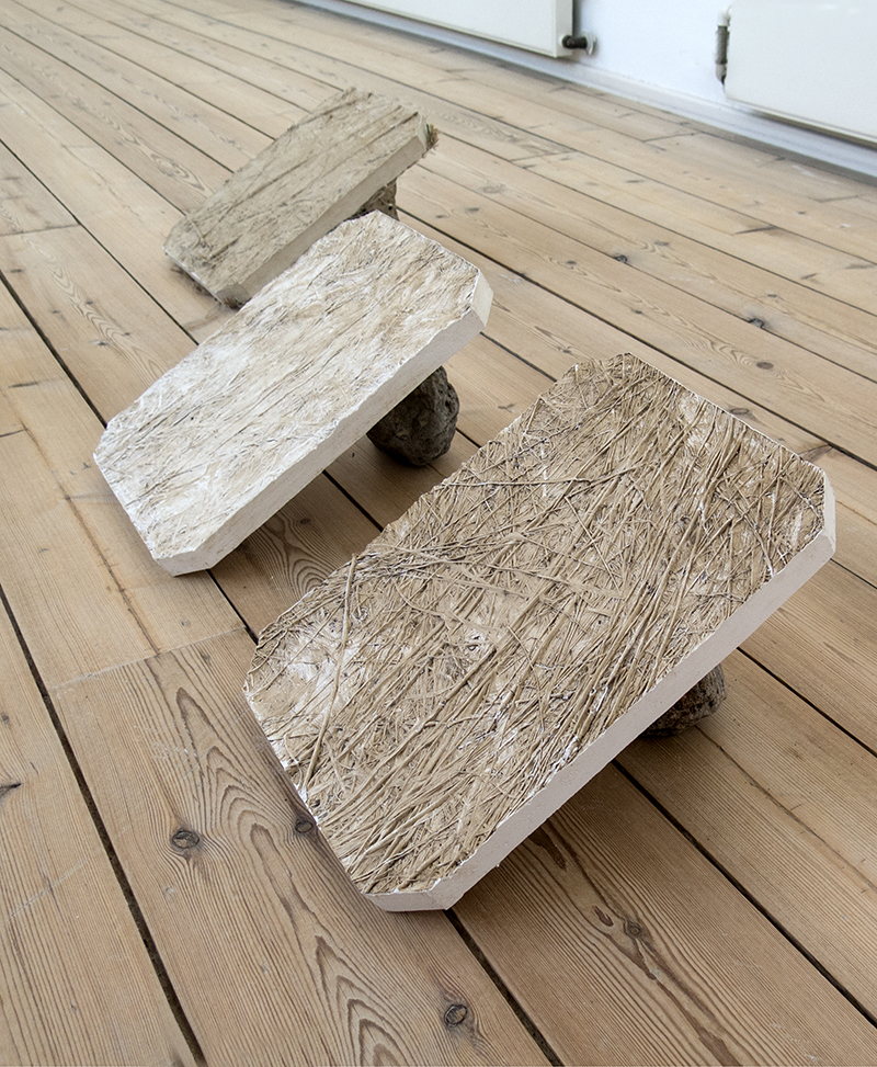 <> ”En samling af æteriske jordforbindelser” PAKHUSgalleriet Nykøbing Sj. 2017Gipsaftryk af græstørv og stenFoto: Lisbeth Nielsen Lyrstrand.© Copyright Lisbeth Nielsen Lyrstrand