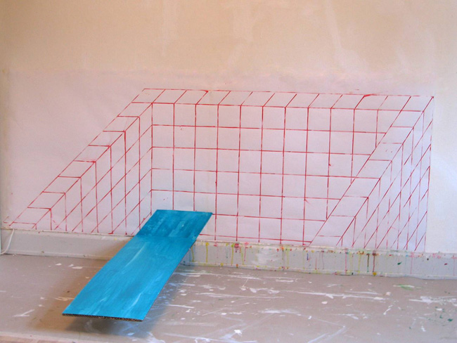 <> "Close to water" 2005.Akryl på væg og pap 100 x 200 x 96Foto: Lisbeth N. Lyrstrand© Copyright Lisbeth Nielsen Lyrstrand