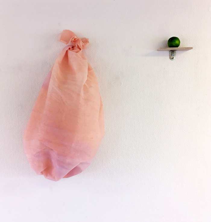 <> Vlieseline-pose 2021 66x34x20 cm. Hylde med limefrugt 2021Foto: Lisbeth Nielsen Lyrstrand© Copyright Lisbeth Nielsen Lyrstrand