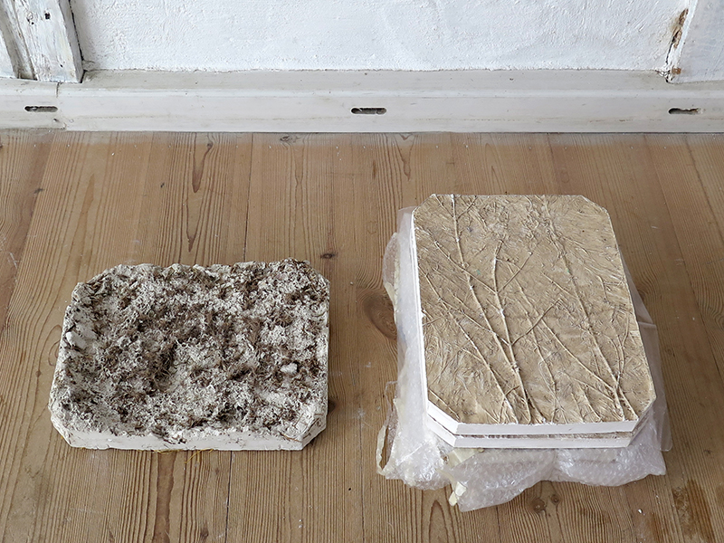 <> Gipsaftryk af græstørven (forskellige teknikker) med emballage af bobleplast 30 x 40 cmFoto: Lisbeth Nielsen Lyrstrand.© Copyright Lisbeth Nielsen Lyrstrand